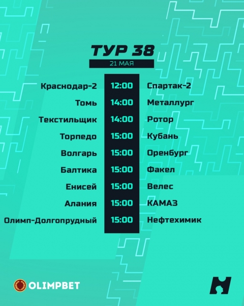 Воронежский «Факел» играет на выезде с калининградской «Балтикой». Чтобы получить прямой выход в РПЛ, воронежцам необходима победа и поражение «Оренбурга». Также они выйдут в РПЛ в случае ничьи «Оренбурга» и параллельного поражения «Торпедо» в своей игре.