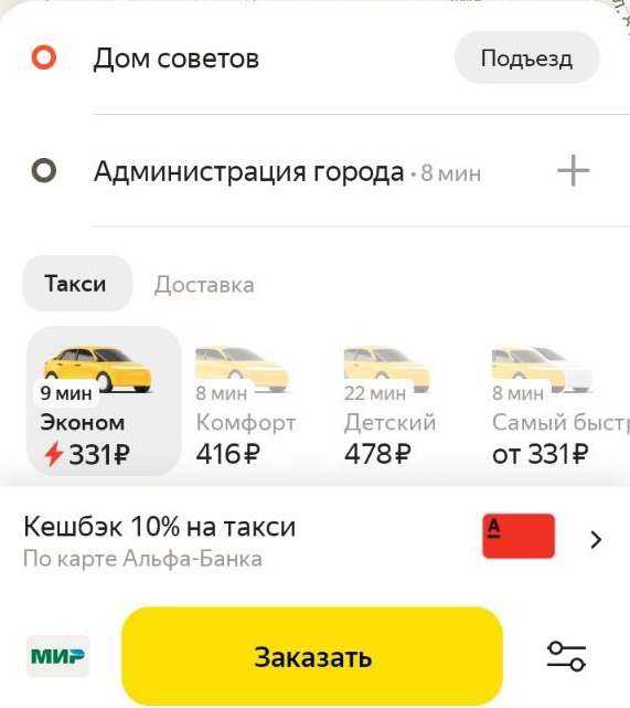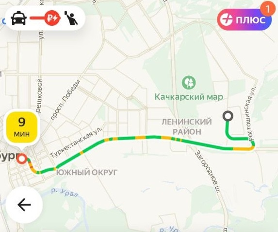 А если срочно нужно из Дома Советов ехать в администрацию Оренбурга, на улицу Советскую, то цена – 331 рубль.