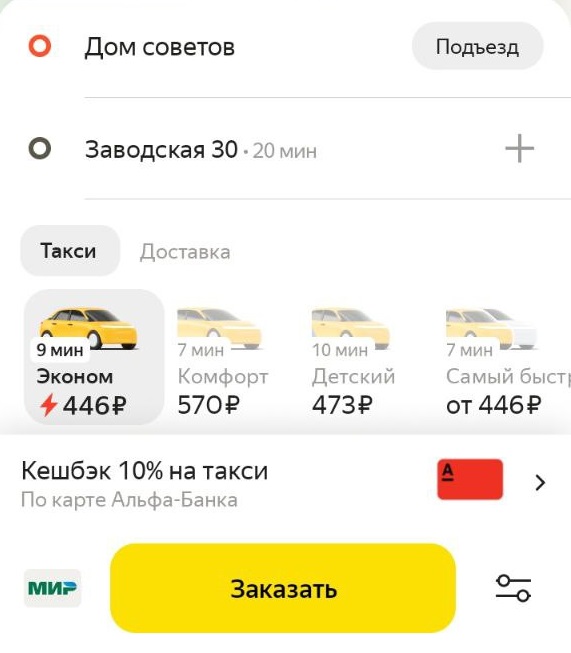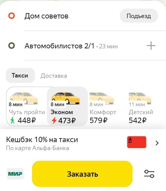 До улицы Автомобилистов от Дома Советов можно доехать за 473 рубля, а если чуть пройтись под дождем (всего лишь порядка восьми минут) – то за 448 рублей.