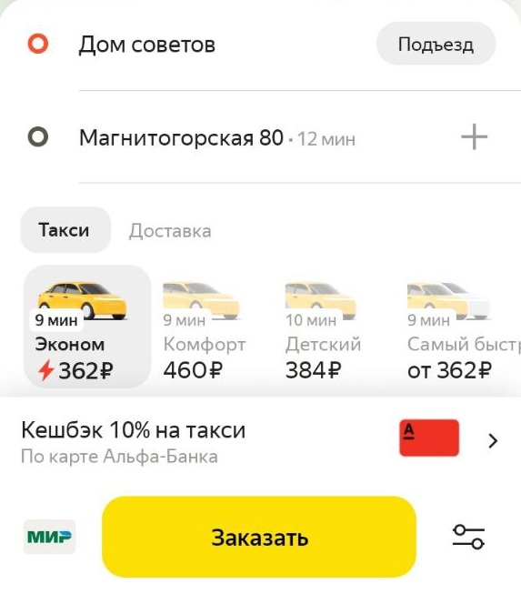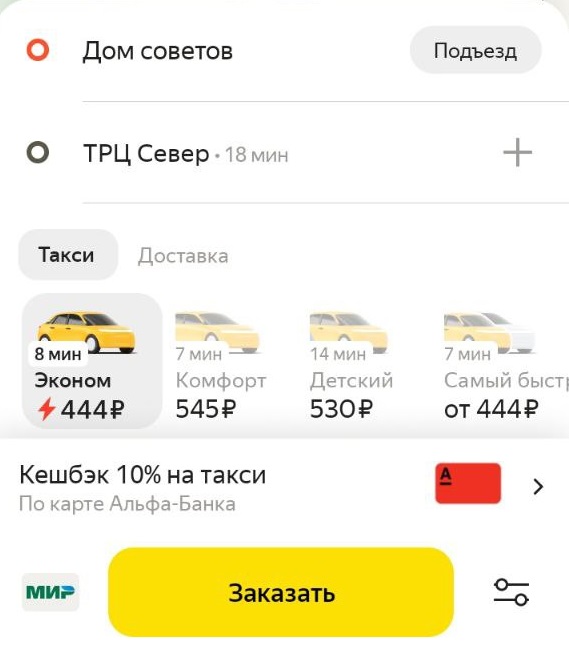 Итак, стоимость поездки до ТЦ «Север» составит 444 рубля.