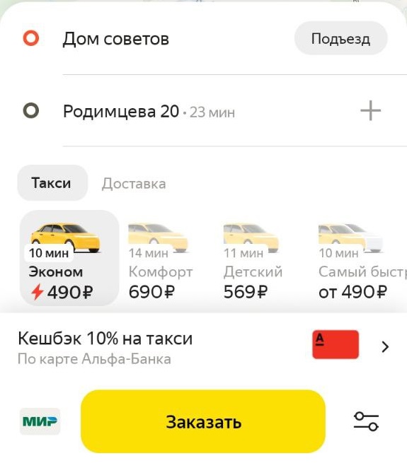До улицы Родимцева стоимость поездки составляет 490 рублей. С ребенком – 569 рублей.
