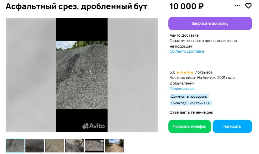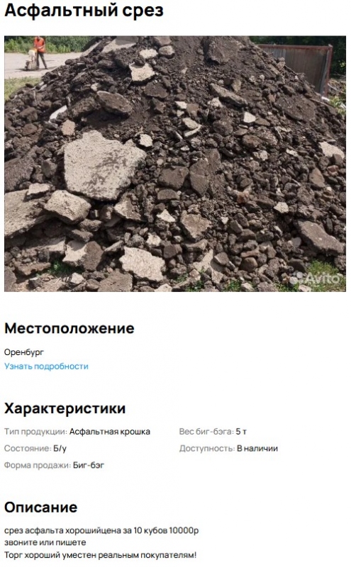 Что интересно, пока чиновники ищут асфальтный срез, он в открытую продается на сайте бесплатных объявлений, а вот как он попадает к предпринимателям - вопрос.