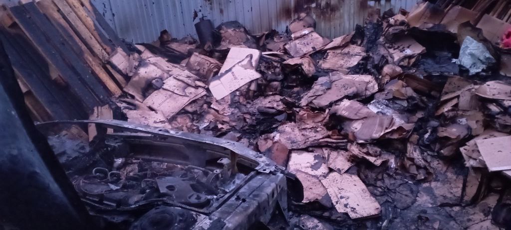 В 07:55 пожар был полностью ликвидирован. Огонь уничтожил моторный отсек автомобиля Renault Laguna и мусор, находящиеся во дворе дома на открытой площадке, на общей площади 10 "квадратов". Очаг пожара находился внутри моторного отсека. Проводится проверка.