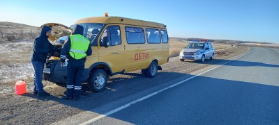 Сотрудники полиции, следовавшие из Оренбурга по своим рабочим делам, встретили на трассе в районе станции Сырт школьный автомобиль «Газель». Транспорт находился на обочине, у него была включена «аварийка».