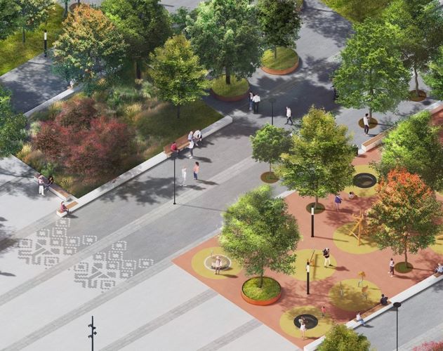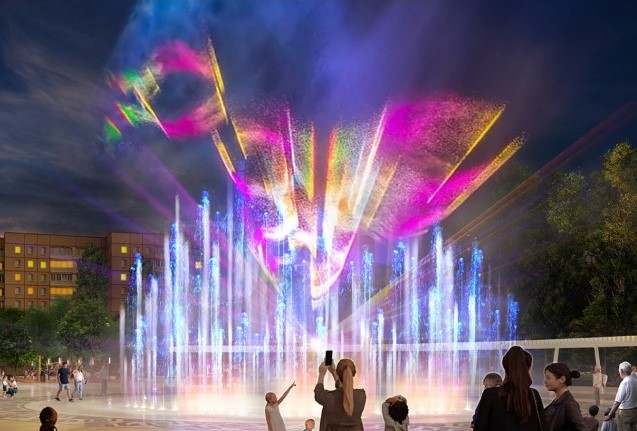 Площадь более чем в 3 гектара планируют разделить на несколько функциональных зон. В центре сквера будет установлен мультимедийный фонтанный комплекс, который планируют оснастить видеопроектором и лазерной системой для проецирования изображения на воду. Территория будет функционировать круглогодично - зимой здесь можно будет полюбоваться «зеленой красавицей» и покататься на коньках. В одной части сквера будет детская игровая площадка и зона активного спортивного отдыха, другую часть сделают рекреационной с организацией мобильного ритейла (не совсем представляем, как это будет выглядеть, потому что интернет-магазин в сквере - что-то новенькое), буккросингом (обменом книгами) и зоной тихого отдыха. Фонари, озеленение - все, как и положено, проект тоже предусматривает. Обновить планируют и входные группы подземного пешеходного перехода поблизости - на остановке "Молодежной". Проектировщикам дали на заседании также задание проработать парковки и покрытие катка.