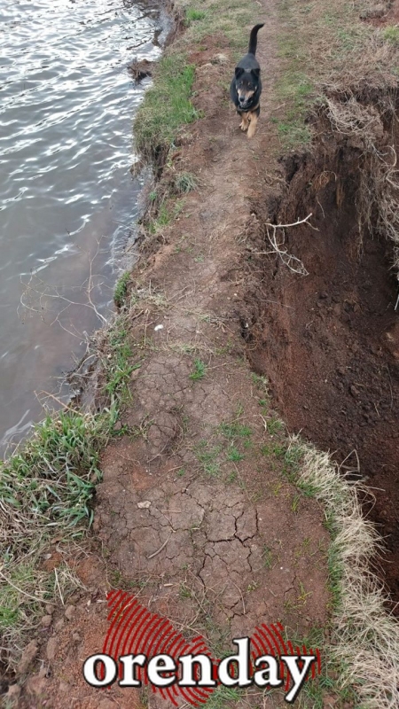 После паводка удерживающая пруд плотина оказалась в критическом состоянии – не сегодня-завтра, как отчетливо видно на фото, оставшийся грунтовый простенок обрушится, и вода ухнет из чаши… Возможно, на дома, на хозяйственные постройки и даже на кладбище.