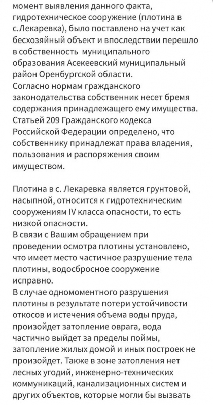 Как следует из ответа, пруд в селе Лекаревка формально являлся бесхозным, и потому стал собственностью администрации Асекеевского района, которая теперь и распоряжается его судьбой: