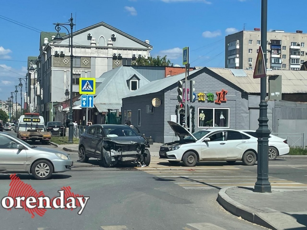 В центре Оренбурга на пересечении улиц Краснознаменной и Комсомольской рано утром произошло дорожно-транспортное происшествие с участием автомобилей «КИА» и «Джили».
