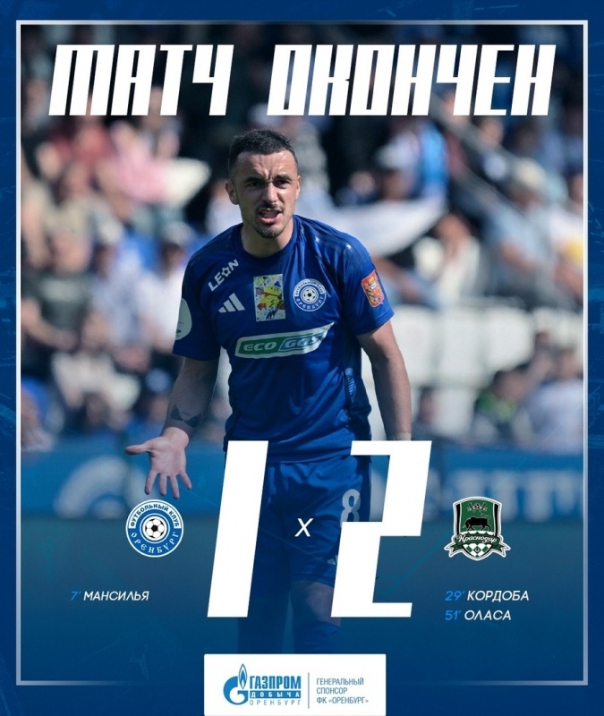 В ходе матча 29-го тура Мир Российской Премьер-Лиги (РПЛ) футбольный клуб «Оренбург» потерпел поражение от «Краснодара» со счётом 1:2. Данный результат привёл к утрате «Оренбургом» шансов на сохранение места в высшем дивизионе российского футбола. Несмотря на оставшийся матч заключительного тура с «Рубином», команда «Оренбург» официально покидает РПЛ.