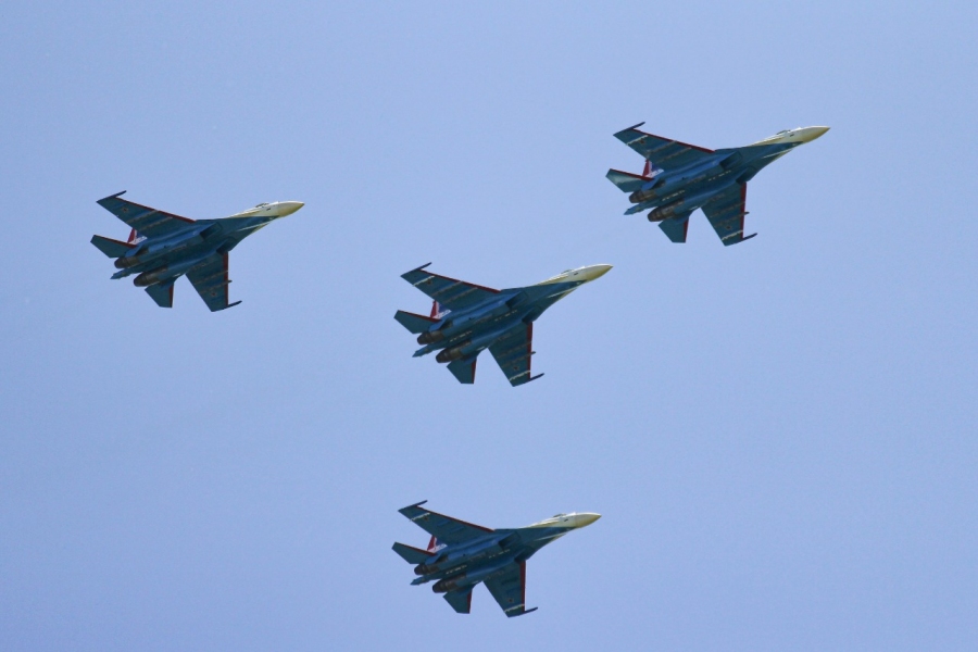 На набережной Урала собрались сотни людей. Всё ради того, чтобы увидеть воочию пролет группы высшего пилотажа ВВС России «Русские витязи». Семь военных лётчиков-профессионалов показали высший класс: они составляли в небе фигуры из шести истребителей, четырех, двух. Самолеты то проносились на низкой высоте, то, как железные величавые птицы, взмывали в небо, переворачиваясь, блестя на ярком солнце, исполняя фигуры высшего пилотажа.