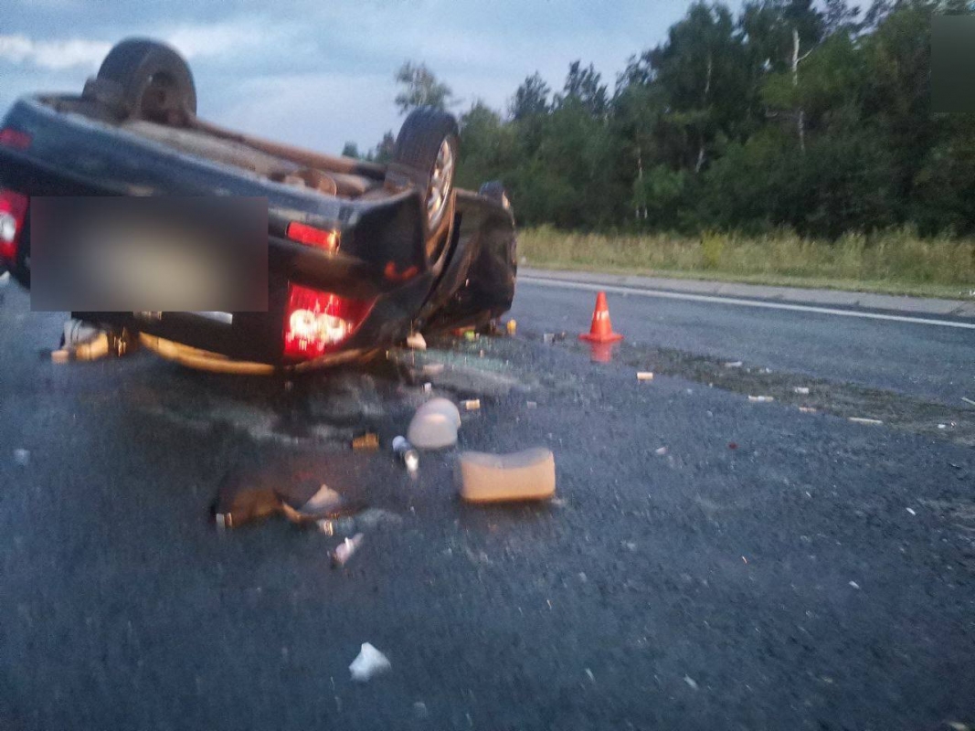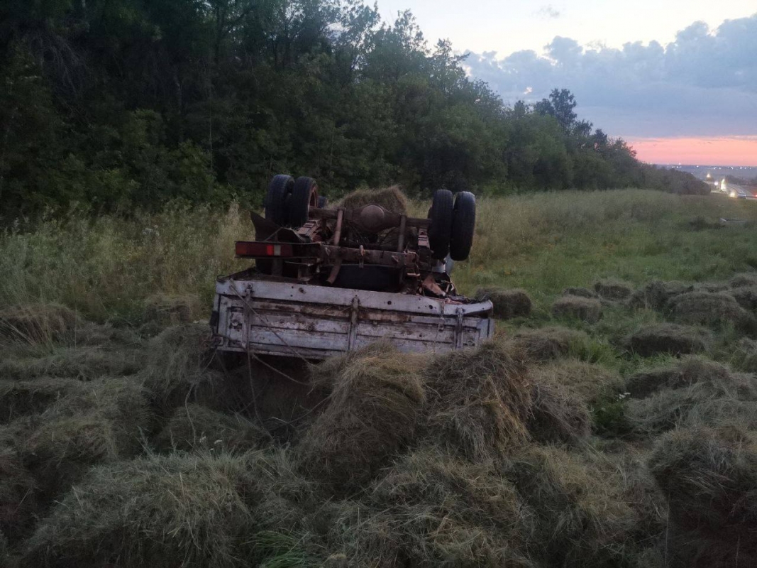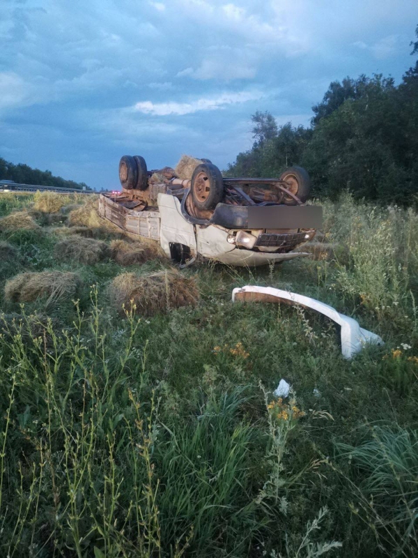 От удара ГАЗель слетела в кювет, где перевернулась и легла на крышу, разбросав по округе тюки сена, которое находилось в кузове. Так же на крыше оказался и ВАЗ.
