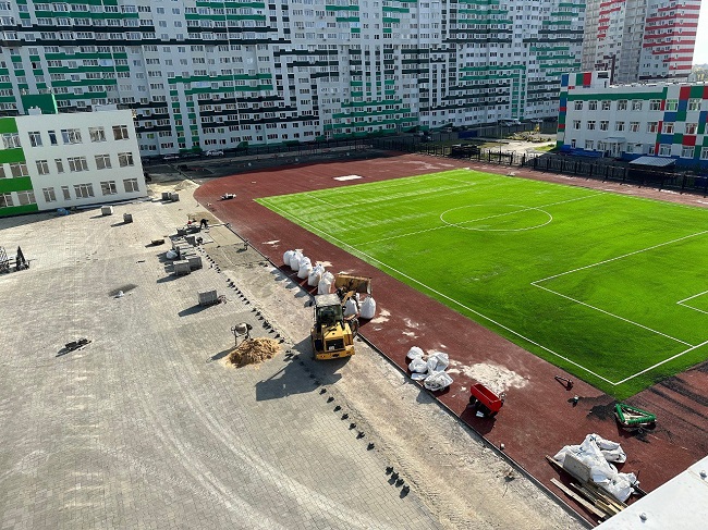 В школе в ЖК «Дубки» на стройплощадке работают 206 человек. Подрядчик – АО «ГрадИндустрия» - планирует закончить уличные работы до конца октября. Здесь уже выполнена большая часть благоустройства территории: уложено покрытие на школьном стадионе, установлены игровые комплексы и скамейки, заасфальтированы проезды и пешеходные дорожки. Запущена автономная котельная.