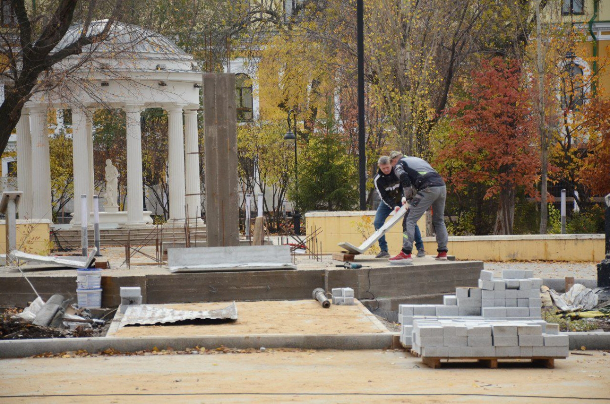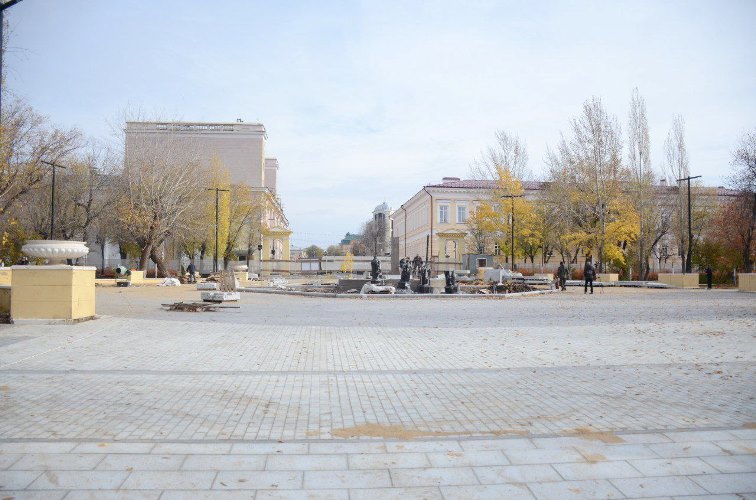 В Оренбурге в сквере имени Ленина 30 рабочих ООО «Уни-строй» уже выполнили 70 процентов всех запланированных работ. Завершено плиточное мощение тротуаров на площади 6000 кв. м, обустроено уличное освещение. На данный момент рабочие занимаются монтажом монолитных блоков пьедестала памятника В. И. Ленину.