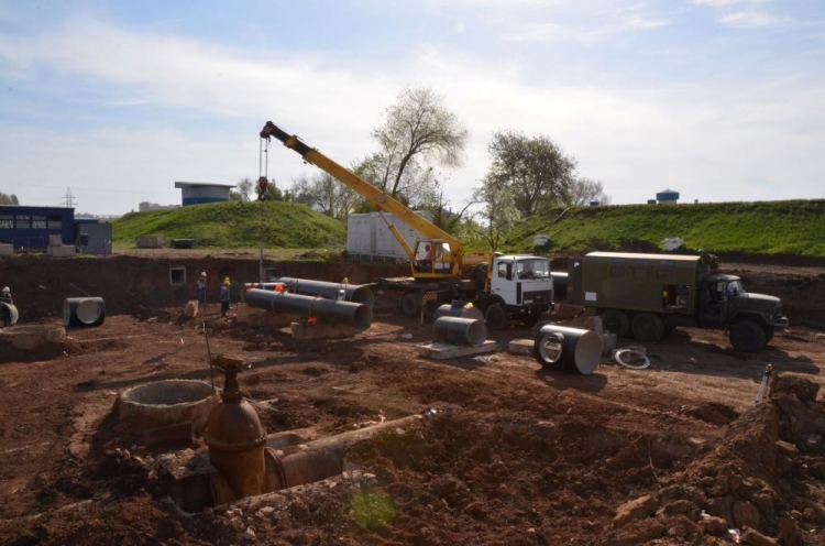 В ходе второго этапа до стены здания насосной станции будут проложены стальные трубопроводы всасывающей гребенки диаметром 800 мм с установкой 5-ти камер и запорной арматуры. Завершить строительные работы планируется в октябре.