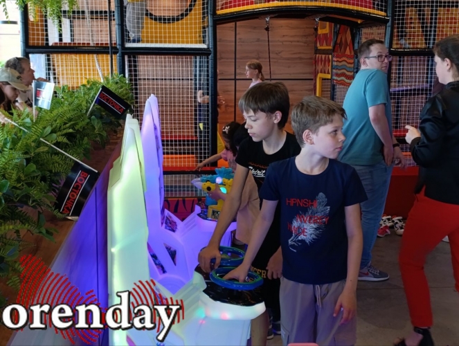 В свой юбилей компания сделала городу три грандиозных подарка! Во-первых, открылось огромное семейное кафе на улице Монтажников, 34/1, где можно не только перекусить, но и приятно провести время в кругу близких. Причём интересно здесь и взрослым, и детям, и подросткам. Здесь работают две игровые комнаты для проведения праздников вместимостью по 10 человек (оборудованы интерактивным полом и стеной, и, кстати, при заказе еды на 5 000 рублей комната предоставляется бесплатно), три интерактивных аэрохоккея, восемь детских игровых автоматов, двухэтажный игровой лабиринт, а также автомат для жетонов.