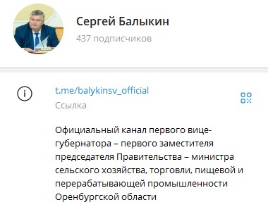 Если же говорить о тг-канале Сергея Балыкина, где публикуются все актуальные темы, касающиеся сельского хозяйства и торговли, то конструктивным диалогом здесь даже и не пахнет. Подписчики не могут дать обратную связь на какую-либо публикацию, потому что комментарии закрыты. Может так и было задумано, а может Сергей Викторович ещё не разобрался как включить комментарии. Пока тг-канал насчитывает свыше 400 подписчиков. https://t.me/balykinsv_official