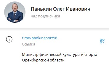 Олег Панькин создал свой тг-канал ещё в 2022 году, но подписчиков он так набрать и не смог. Пока около 300 жителей Оренбуржья знают о существовании министра физической культуры и спорта в мессенджере Телеграм. Посты хоть и выкладываются со средней периодичностью, там всё же наблюдается небольшая динамика, но обратная связь от Олега Ивановича достаточно редкое событие. https://t.me/pankinsport56