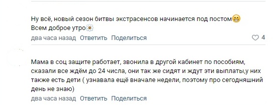 Обеспокоенные мамы и папы ежедневно названивают в центр социальной поддержки населения, желая услышать, когда же им поступят деньги, но внятного ответа на этот вопрос не дождались. К слову, люди получают эти средства вовсе не от хорошей жизни - выплата на детей в возрасте от трех до семи лет полагается семьям, в которых размер среднедушевого дохода не превышает региональный прожиточный минимум. И на них, как правило, имеются определенные планы: кто-то на эти деньги выплачивает кредит и уже просрочил очередной платёж, кто-то рассчитывается за коммунальные услуги, а также за посещение чадом кружков и секций. Конечно, есть и те, кто на эту небольшую сумму (размер выплат составляет от 5 958,50 до 11 917 рублей) покупают продукты и делают прочие текущие закупки, пока, например, не получили заработную плату.