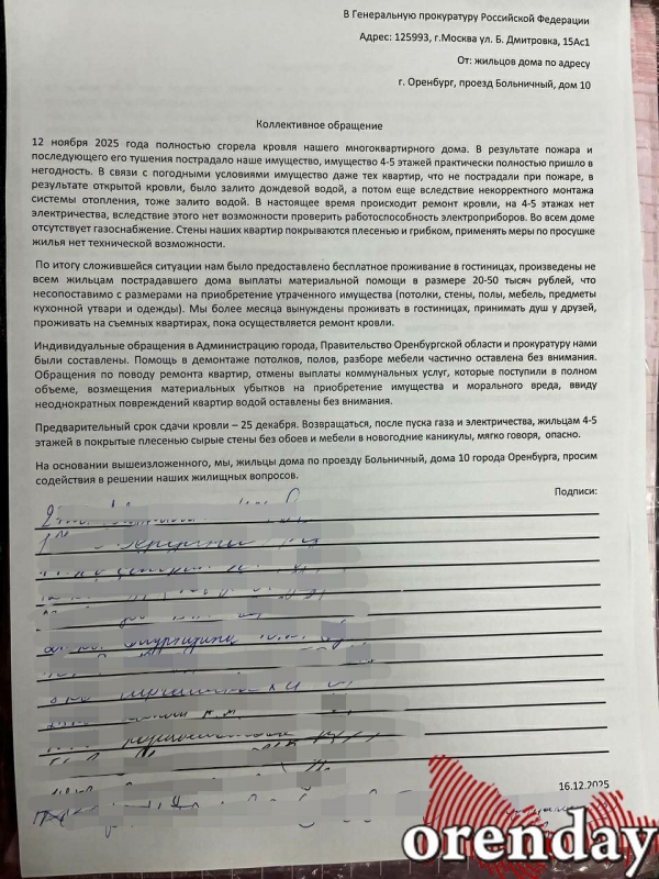 Предоставление материальной помощи гражданам, оказавшимся в трудной жизненной ситуации, осуществляется за счет средств областного бюджета. Условия предоставления и размер выплаты определяются Министерством социального развития Оренбургской области. Дополнительная материальная помощь оказана пострадавшим за счет средств бюджета г. Оренбурга 27.11.2025 в размерах от 15,0 до 70,0 тыс. руб. в зависимости от индивидуальной ситуации с учетом степени повреждений, указанных в личном заявлении, документах по результатам осмотра квартир. Всего Администрацией г. Оренбурга материальная помощь (по состоянию на 5 декабря) оказана 8 семьям (имеющим документ МСЧ Оренбургской области подтверждающий вред от пожара) на общую сумму 330,0 тыс. руб., - отметили в администрации.
