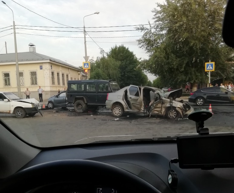 Оказалось, что водитель Kia Rio на большой скорости несся по проезжей части по улице Советской, не замечая светофоров, тем самым нарушая правила дорожного движения. Выехав на перекресток улиц Советской и Рыбаковской самонадеянный водитель иномарки не тормознул на красный цвет и не уступил дорогу автомобилю Renault LOGAN, двигавшегося по дороге со скоростью 60 км/ч. От мощного удара LOGAN вылетел на «встречку» и врезался в Land Rover. Зацепил Renault и проезжающий мимо ВАЗ-21099.