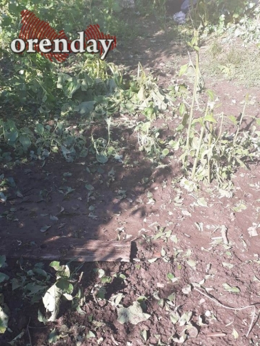Женщина очень опечалена тем, что град побил все, что она выращивала на огороде. От моркови, баклажан, капусты, свеклы, кабачков, помидоров, огурцов остались одни только листья, которые теперь раскиданы по земле. Пострадали от льдин и автомобили, которые в это время оказались не под навесом – у них град побил стекла, оставил вмятины на кузове.