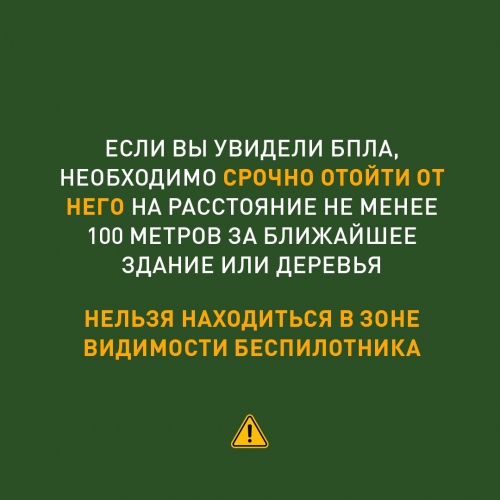 Оренбуржцам, которые оказались на пути следования беспилотника, следует спрятаться за зданием, деревом или другим укрытием и предупредить окружающих. Нельзя находиться на открытой местности, пытаться сбить аппарат или пользоваться мобильными телефонами рядом с ним.