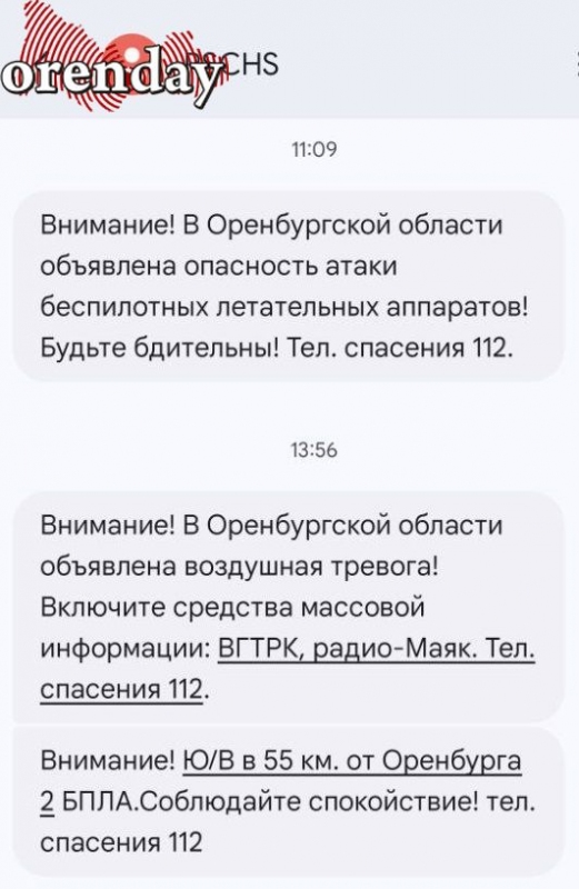 Сегодня в Оренбургской области в одиннадцатом часу утра вновь была объявлена опасность атаки БПЛА. О воздушной тревоге сообщали по громкоговорителям. В областном центре был введен план «Ковер»: аэропорт временно не принимал и не выпускал воздушные суда. В боевую готовность были приведены военные. Массовые мероприятия отменили.