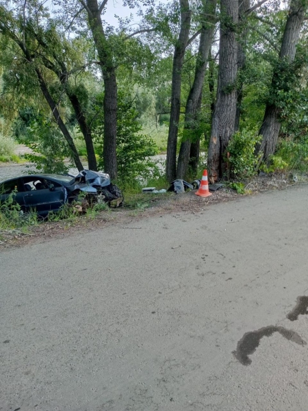Водитель автомобиля не справился с управлением и слетел в кювет, где врезался в дерево.