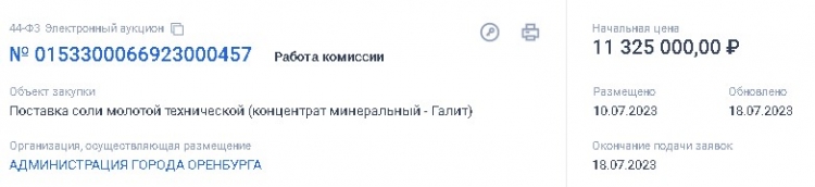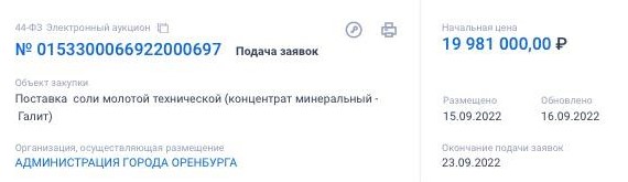 В прошлом году в конце сентября на «Госзакупках» появлялся аналогичный тендер, но один – за 19 981 000 рублей мэрия Оренбурга готова была приобрести тот же самый галит – 3 770 тонн. Никто из поставщиков не захотел заявляться на тендер, и после появился новый - на 3 858 400 рублей, причем всего на 728 тонн галита.