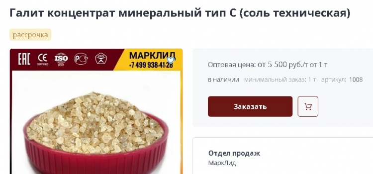 И буквально тут же на сайте «Госзакупок» появились сразу два тендера на поставку молотой технической соли (концентрат минеральный – галит). Почему именно галит, Салмин объяснял еще в прошлом году: