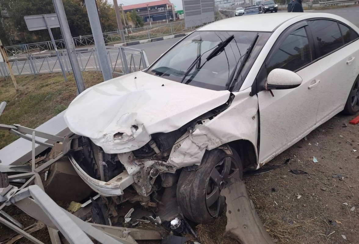 Предварительно установлено, что 31-летний водитель автомобиля Chevrolet Cruze выехал на перекресток на красный свет светофора и врезался в автомобиль Lada Granta, за рулем которого находилась 32-летняя женщина. Она ехала во встречном направлении и завершала поворот налево. От удара иномарка пробила металлическое ограждение и шумозащитный экран.