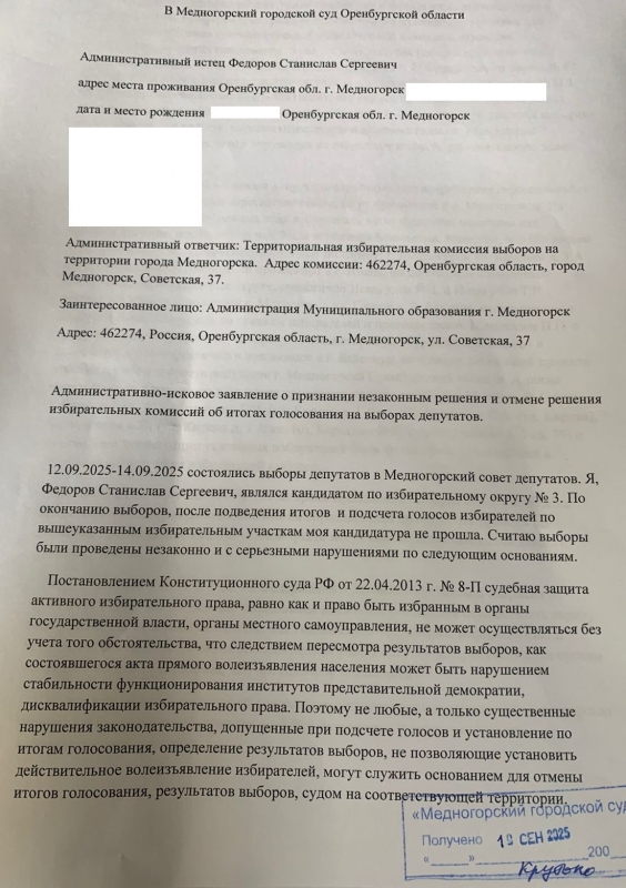 О серьезных нарушениях стало известно депутату Горсовета Медногорска прошлого созыва Станиславу Фёдорову, который баллотировался и в этом году по избирательному округу №3, и к удивлению массово голосовавших за него, не прошедшему как раз по двум избирательным участкам.