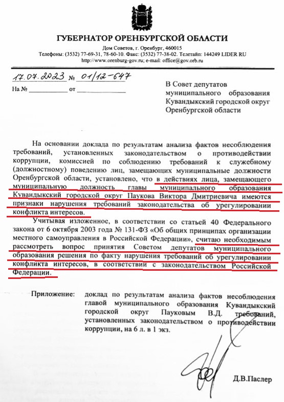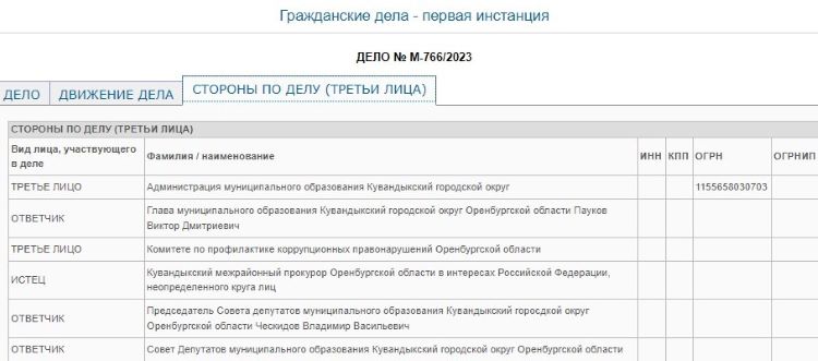 Губернатор в своем письме предложил депутатам принять какое-то решение в отношении Виктора Паукова. Последовало и соответствующее представление прокуратуры, но данное требование кувандыкские депутаты так и не исполнили. В результате чего 17 октября прокурор направил в Кувандыкский райсуд в интересах неопределенного круга лиц и РФ иск к Паукову, Ческидову и местному Совету депутатов.