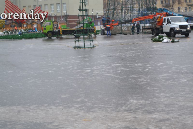 Даже на подходе к мэрии и на крыльце Дома Советов сегодня красовалась корка изо льда. Площадь им. Ленина, которую полным ходом украшают к Новому году, превратилась в один сплошной каток.