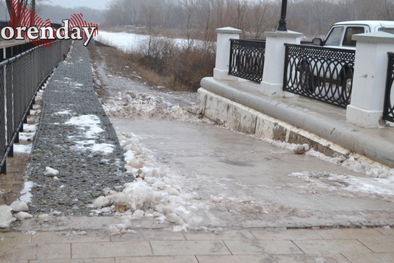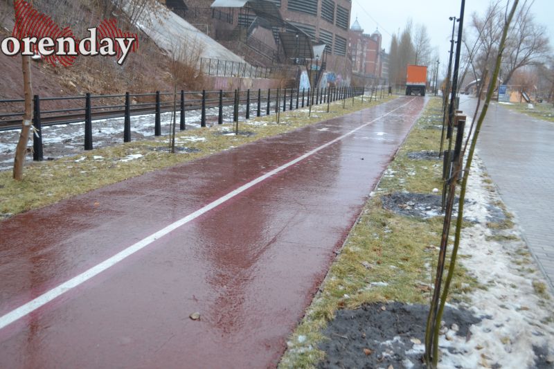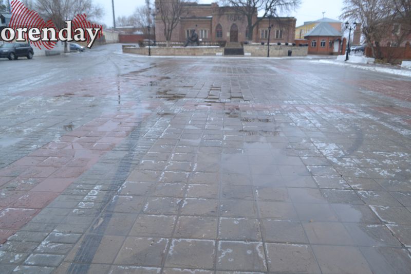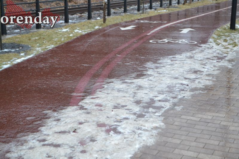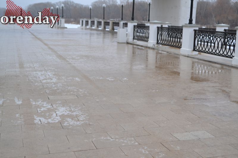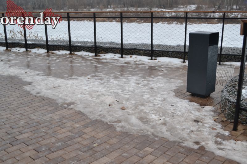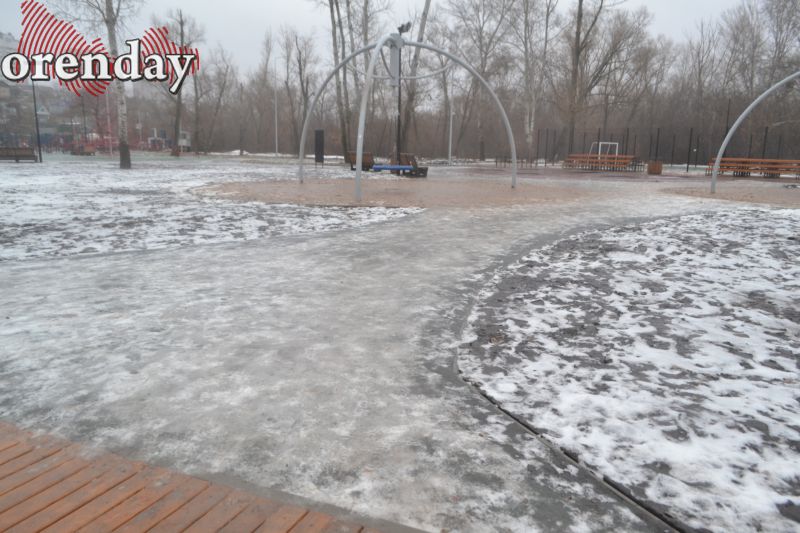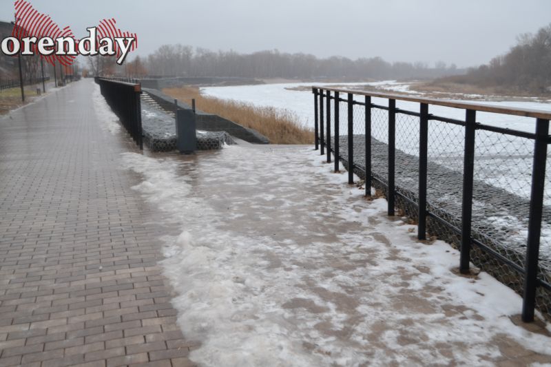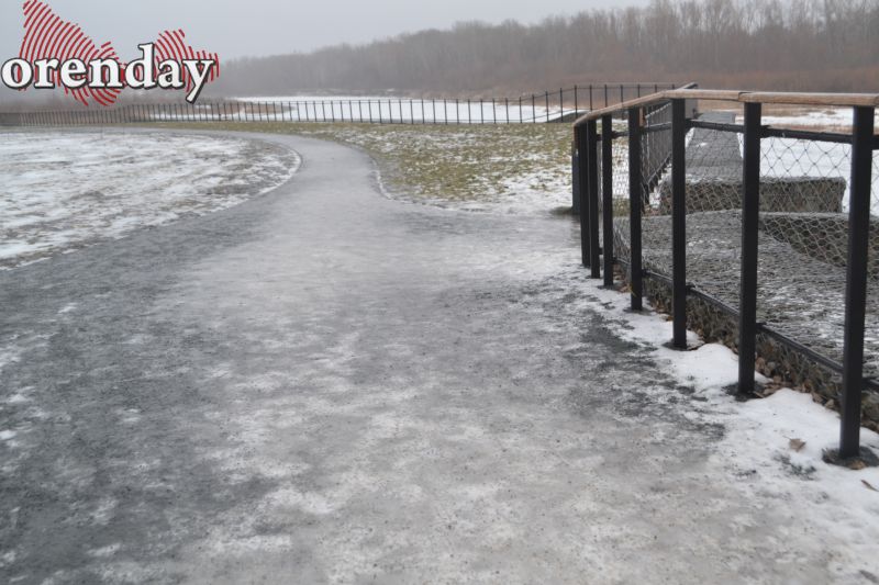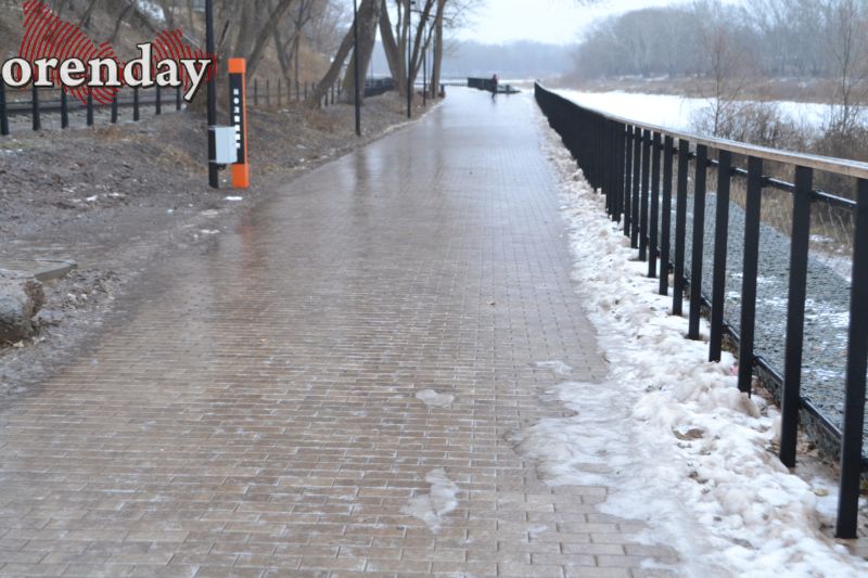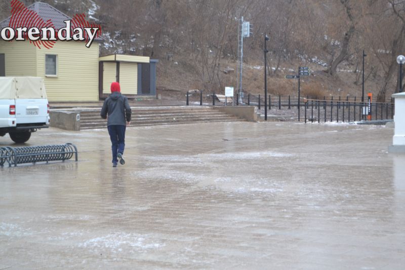 Но несмотря на это, оренбуржцы все равно не отказывали себе сегодня в прогулках по городу. Народ прогуливался по центральной улице, набережной даже с детьми, да и спортсмены не смогли отказаться в такой день от пробежек. Один из бегунов сначала решил отправиться по традиционному маршруту по набережной, но так как по плитке бежать было весьма опасно, свернул на землю в сторону детской железной дороги.