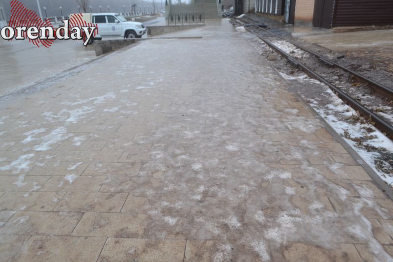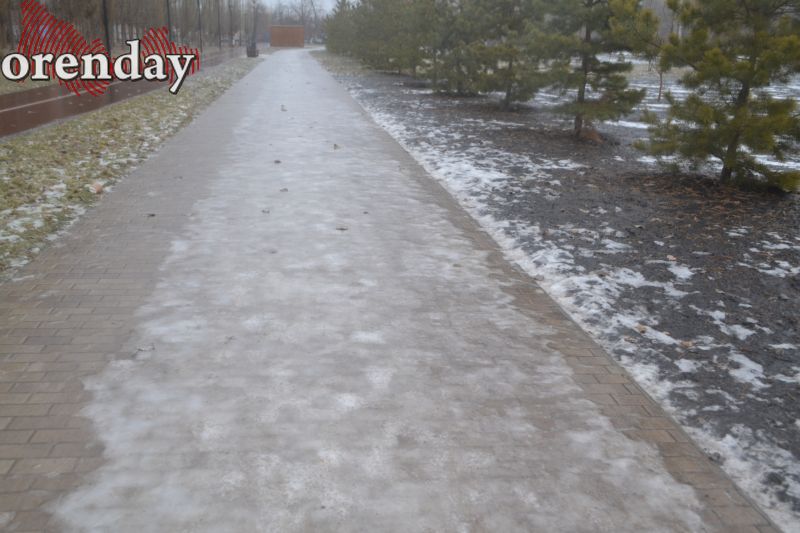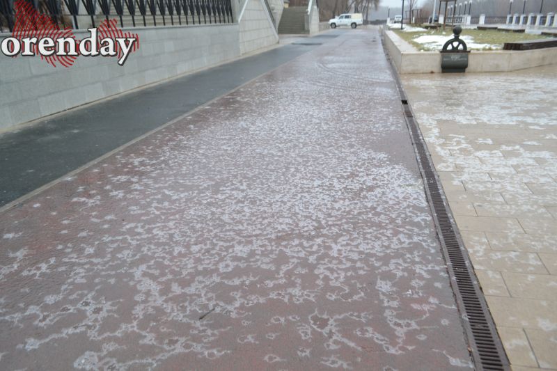 Лед оказался на дорожках абсолютно по всему Оренбургу, бороться с ним как-то не особо спешили коммунальщики. Идешь по тротуару, а под тобой трещит, словно идешь не по асфальту, а по тонкому льду водоема, прибавлять шаг - чревато нехорошими последствиями. Особенно проблемно было пройти по тротуарной плитке.