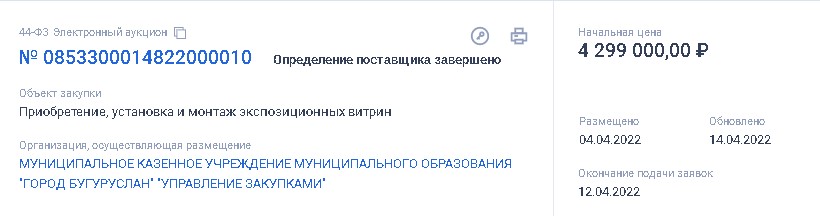 В 2022 году в Бугуруслане в рамках реализации национального проекта «Культура» для нужд «Бугурусланского краеведческого музея» должны были приобрести и установить экспозиционные витрины. В установленные муниципальным договором сроки подрядчик не выполнил свои обязательства.