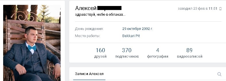 Последний раз "онлайн" Алексей был утром 23 февраля. На его личной страничке в статусе - строчка из известной песни группы "Конец фильма": "здравствуй, небо в облаках"...