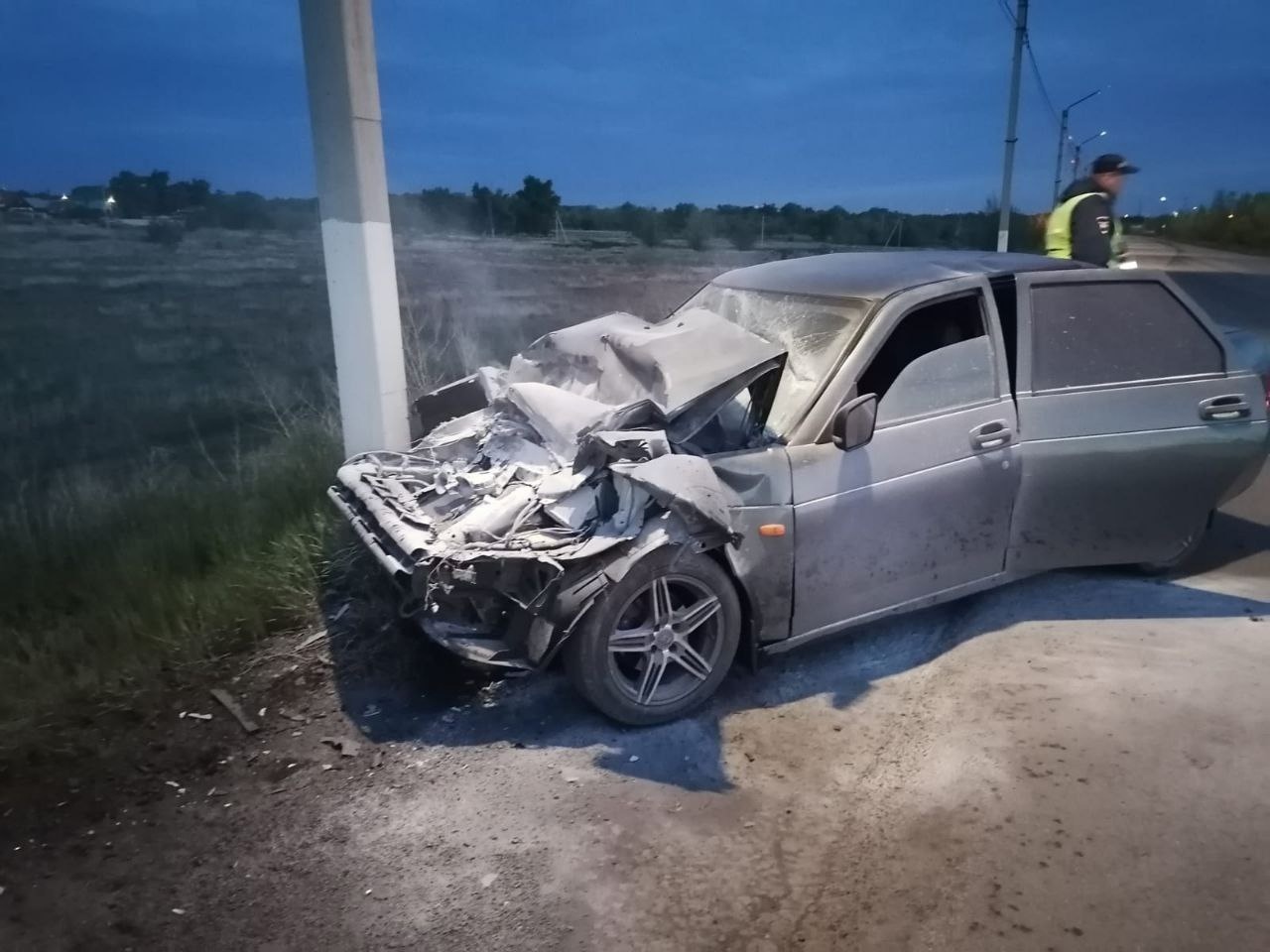 После столкновения с автобусом "Приора" врезалась в электроопору.