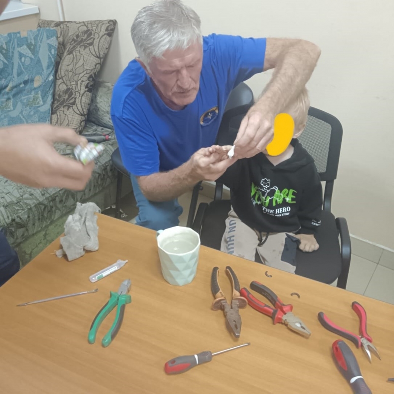 Мастера своего дела, снявшие огромное количество оков с разных мест оренбуржцев, попытались сначала освободить юного исследователя от шайбы без распиловки. Напуганного ребенка отвлекали разговорами, чтобы он не плакал, и корпели над «кольцом». Однако без специнструмента шайба не поддавалась, пришлось все-таки пилить. Работа весьма филигранная, одно неверное движение и…