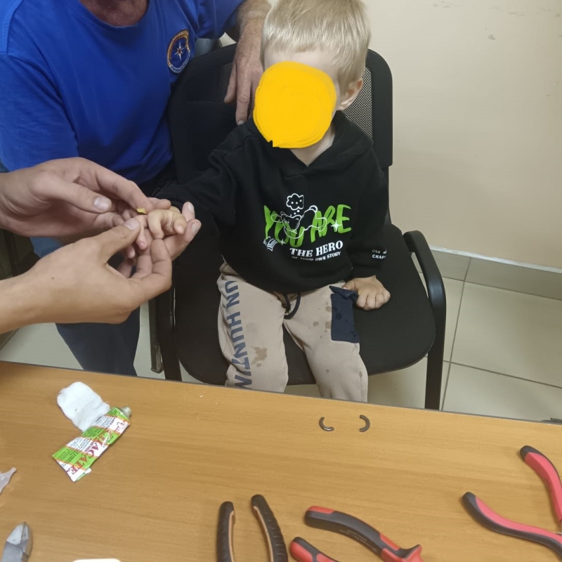 Накануне на базу спасателей АСС Оренбургской области примчался обеспокоенный отец и его маленький сын. Мальчишка, играючи, натянул на крохотный пальчик гроверную шайбу, а вот снять ее не смог ни сам ребенок, ни его родители, поскольку палец сильно отек.