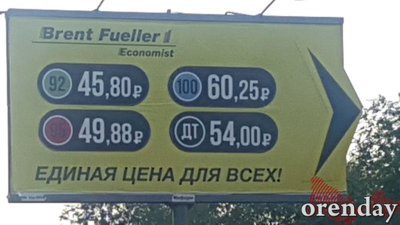 «Brent Fueller», в отличие от первого времени, снизил сейчас стоимость: «92-й» - 45,8 рубля, «95-й» - 49,88 рубля, «100-й» - 60,25 рубля и ДТ - 54 рубля за литр.