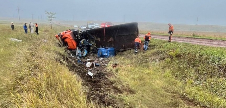 В Оренбуржье в Пономаревском районе на грунтовой дороге произошло опрокидывание грузового автомобиля КАМАЗ. За рулем был 39-летний водитель, а рядом находился 45-летний пассажир. Предварительно, сотрудники полиции установили, что водитель не справился с управлением, что и привело к опрокидыванию транспортного средства в овраг. Машину сильно смяло, поэтому спасателям пришлось деблокировать пострадавших, однако, 45-летнего пассажира спасти не удалось, а вот 39-летнего водителя с травмами отправили в больницу. Стражи правопорядка установили, что во время движения водитель КАМАЗа был пьян.