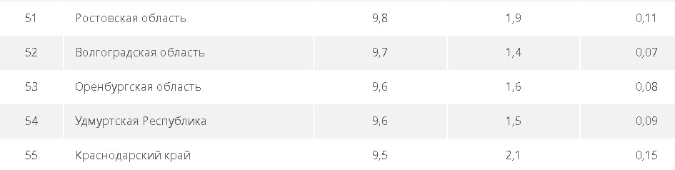 Рядом с нами в рейтинге расположились Ростовская и Волгоградская области, Удмуртская Республика и Краснодарский край.