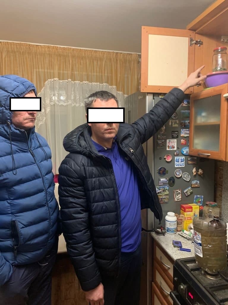 В ходе дальнейших мероприятий на основании постановления суда в домовладении у подозреваемого были проведены обысковые мероприятия, в результате которых оперативники обнаружили на кухне в навесном шкафу две стеклянные банки и два пакетика с зеленой массой. Проведенная экспертиза подтвердила, что внутри находилась наркотическое средство, вес - более 19 граммов.