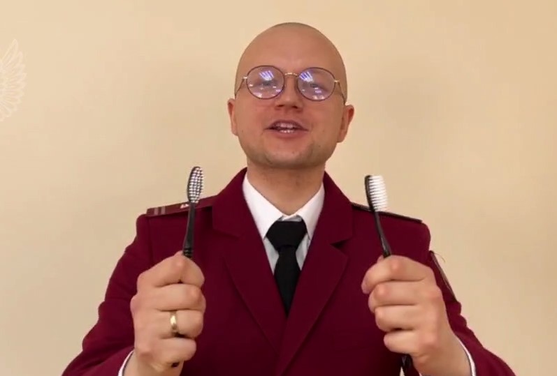 Будь аккуратен, забудь лень, чисть зубы каждый день! - такие лозунги скандируют сотрудники местного ведомства, используя реквизит.