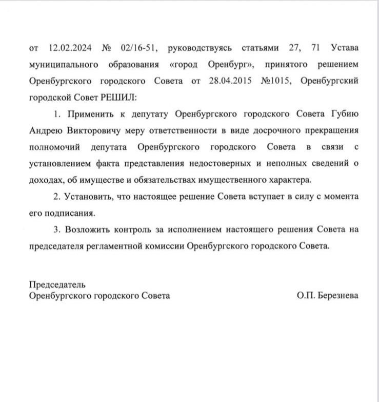 Своего мандата может лишиться депутат Андрей Губий. По данным Orenday, вопросы возникли к заработку его супруги, а если быть точнее, зафиксировали нарушение в декларации.