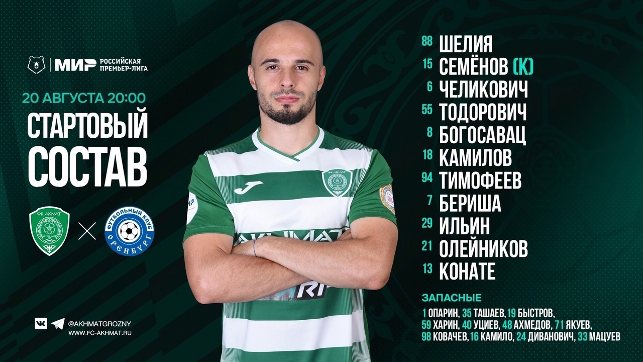 В рамках пятого тура Российской Премьер-Лиги ФК «Оренбург» гостил в Грозном, где их соперником был «Ахмат», за несколько дней до матча отправивший в отставку главного тренера Сергея Ташуева, и назначивший нового рулевого – Мирослава Ромащенко.