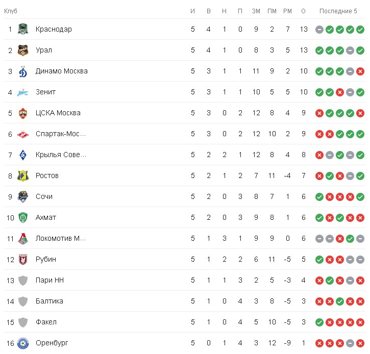 Тем временем, «Оренбург» после пятого тура опустился на последнее место в турнирной таблице РПЛ. Только оренбургская команда не смогла пока одержать ни одной победы, и с одним очком (ничья с «Рубином»), замыкает когорту лучших клубов России. Отметим, что в пассиве «газовиков» уже 12 пропущенных мячей, что тоже является худшим результатом в лиге.