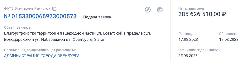 Теперь на «Госзакупках» появился тендер на третий этап благоустройства улицы Советской - до улицы Володарского. Стоимость больше, чем у первых двух этапов вместе взятых – 285,6 миллионов рублей.